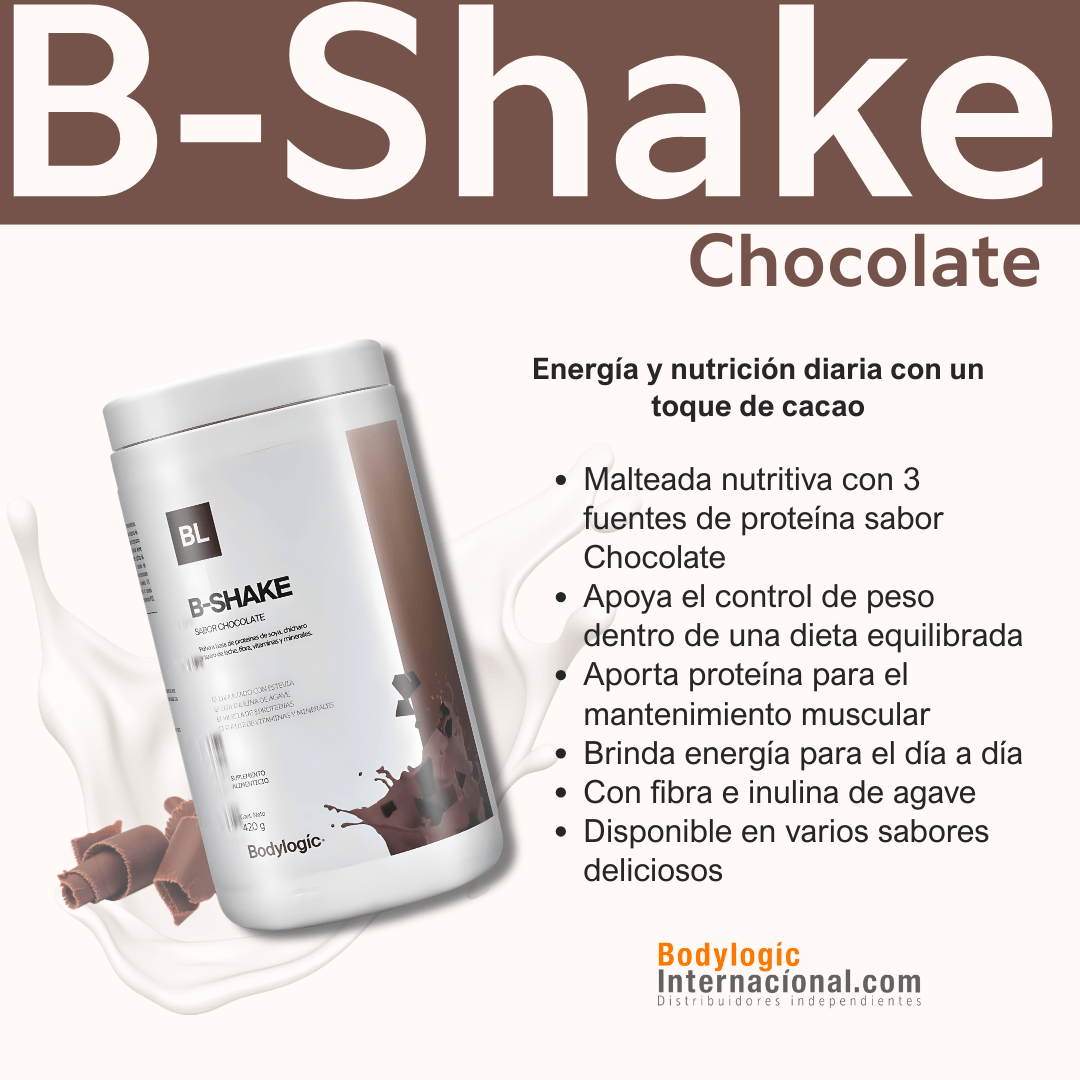 B-Shake BodyLogic es una malteada nutricional formulada con una combinación de tres proteínas de origen vegetal y animal: soya, chícharo y suero de leche. Su fórmula está diseñada para complementar la alimentación diaria de forma práctica y balanceada.