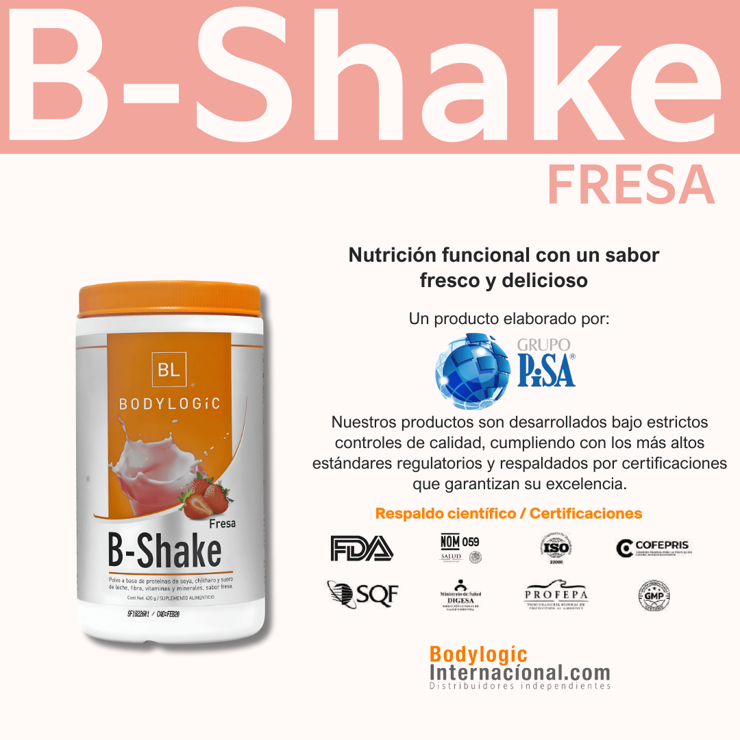 Además de proteína, B-Shake aporta carbohidratos, fibra soluble e insoluble, vitaminas, minerales e inulina de agave, lo que lo convierte en una opción funcional para personas que buscan cuidar su nutrición diaria o sustituir una comida ligera dentro de un plan alimenticio equilibrado.