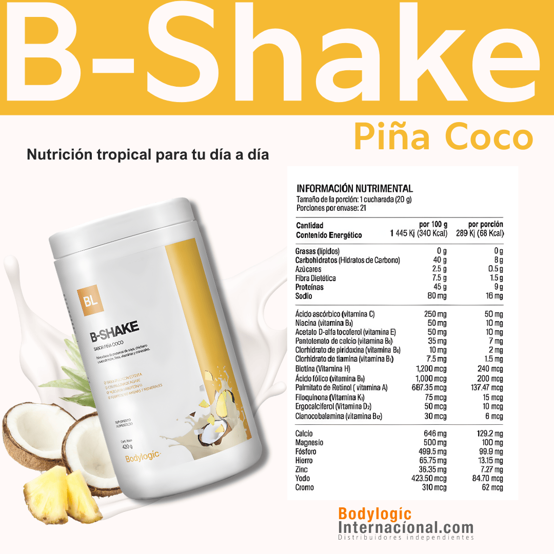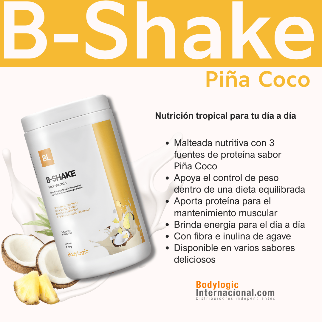 B-Shake es una malteada nutritiva que combina 3 proteínas de alto valor biológico: soya, chícharo y suero de leche. Aporta el balance ideal de proteínas, carbohidratos, fibra soluble e insoluble, además de estar adicionada con vitaminas, minerales e inulina de agave.